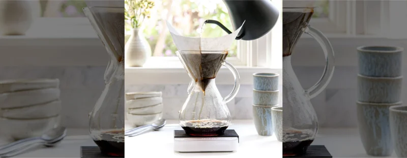 Chemex sử dụng một bộ lọc giấy dày và kết quả là một cốc bia...